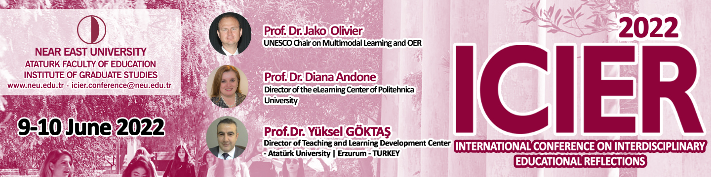 International Conference on Interdisciplinary Educational Reflections Presentations at our conference will be online. Participants can either present their work in online platform of Google Meet. All instructions and schedule will be posted on this website of ICIER. The opening ceremony of the conference will be held on online and three valuable keynotes will make opening speeches. Hope to see you in 2022 at the ICIER conference themed “Innovative Practices in the Future of Education” Selected full-text papers will be published in these Supporting journals after the process of peer review :